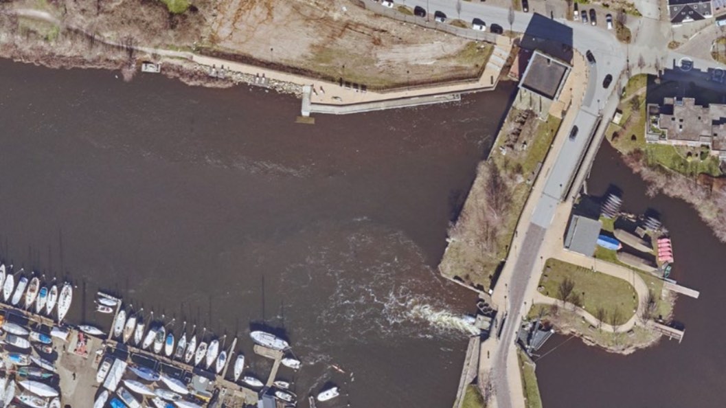 Schwentine-Ufer neben der "Alten Mühle" an (Luftbild).